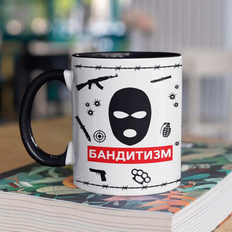 Чашка керамічна з принтом "бандитизм" 330 мл, біла з чорною ручкою |easypick|