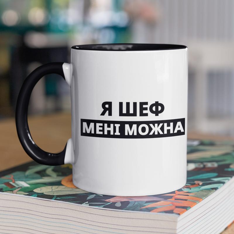 Чашка керамічна з принтом "я шеф мені можна" 330 мл, біла з чорною ручкою |easypick|