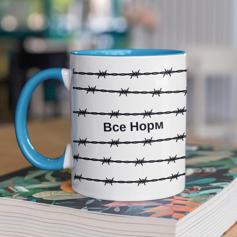 Чашка керамічна з принтом "все норм" 330 мл, біла з блакитною ручкою |easypick|