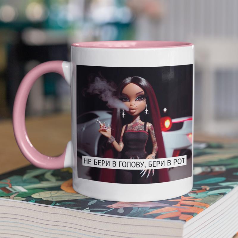 Чашка керамічна з принтом "не бери в голову" 330 мл, біла з рожевою ручкою |easypick|