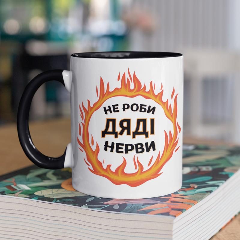 Чашка керамічна з принтом "не роби дяді нерви" 330 мл, біла з чорною ручкою |easypick|