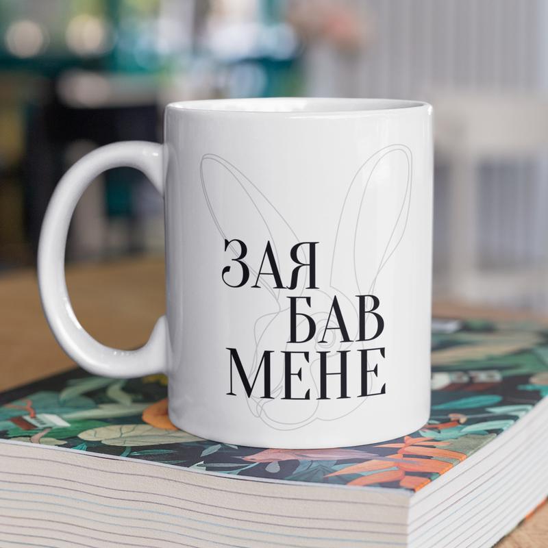 Чашка керамічна з принтом "зая бав мене" 330 мл, біла |easypick|