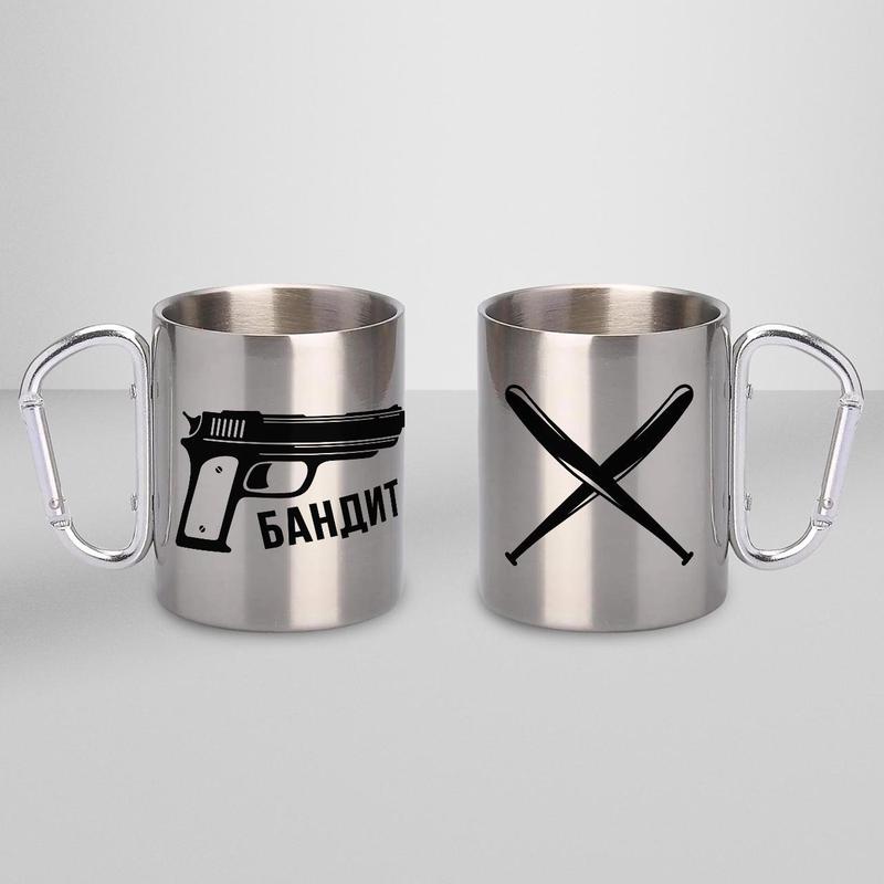 Кружка металева з карабіном "бандит" 300 мл срібляста