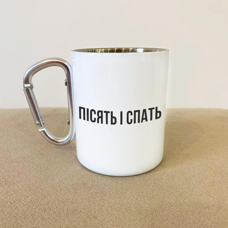 Кружка металева з карабіном "пісять і спать" 300 мл біла