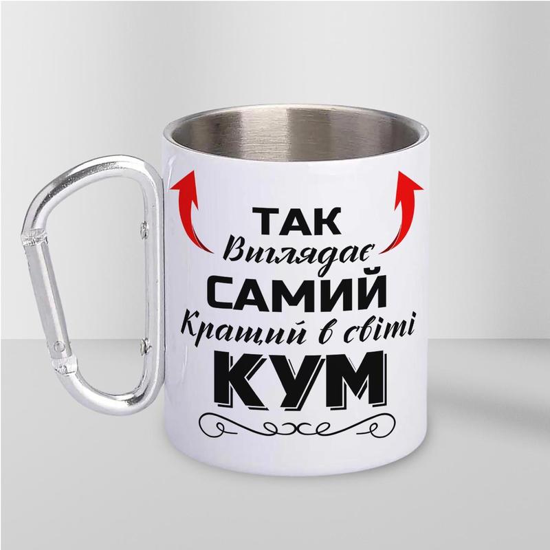 Кружка металева з карабіном "так виглядає самий кращий кум" 300 мл біла