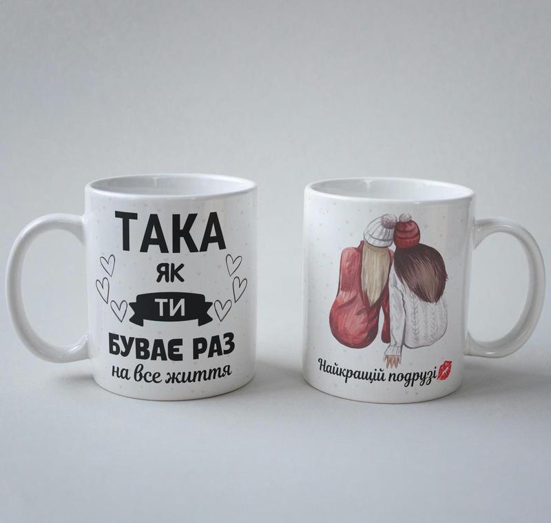 Кружка з принтом "така як ти буває раз на все життя подруга" 330 мл біла