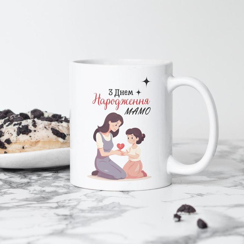 Кружка з принтом "з днем народження мамо" 330 мл біла