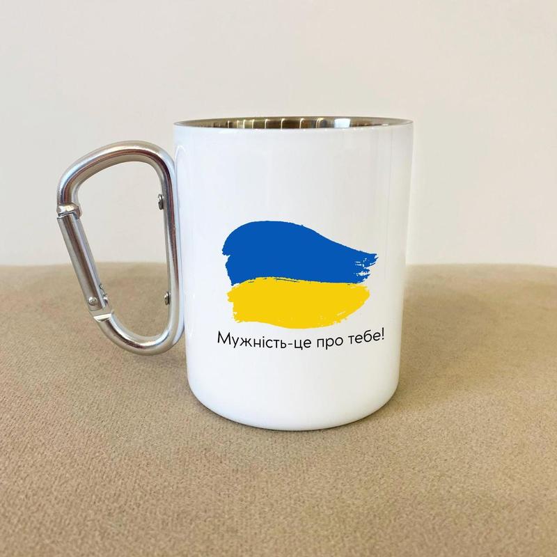 Кружка металева з карабіном "мужність-це про тебе!" 300 мл біла