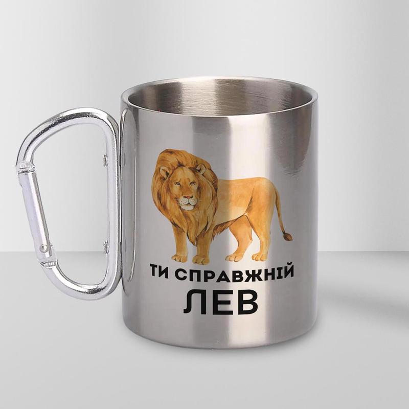 Кружка металева з карабіном "ти справжній лев" 300 мл срібляста