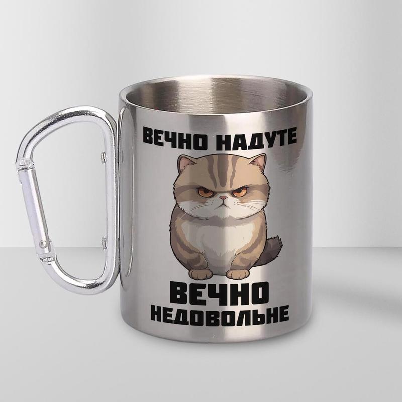 Кружка металева з карабіном "вєчно недовольне" 300 мл срібляста
