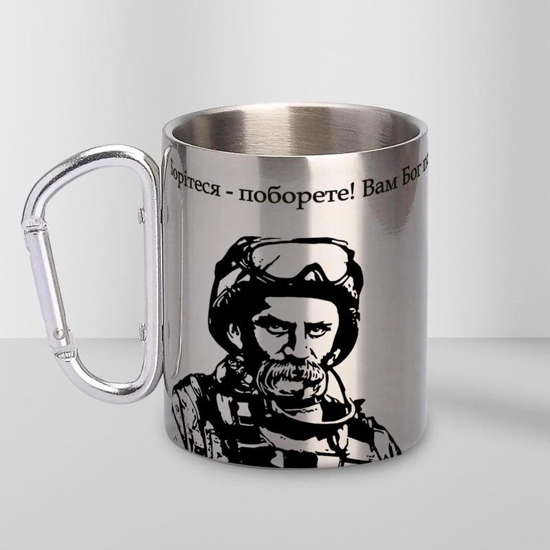 Кружка металева з карабіном "шевченко боріться поборете" 300 мл срібляста