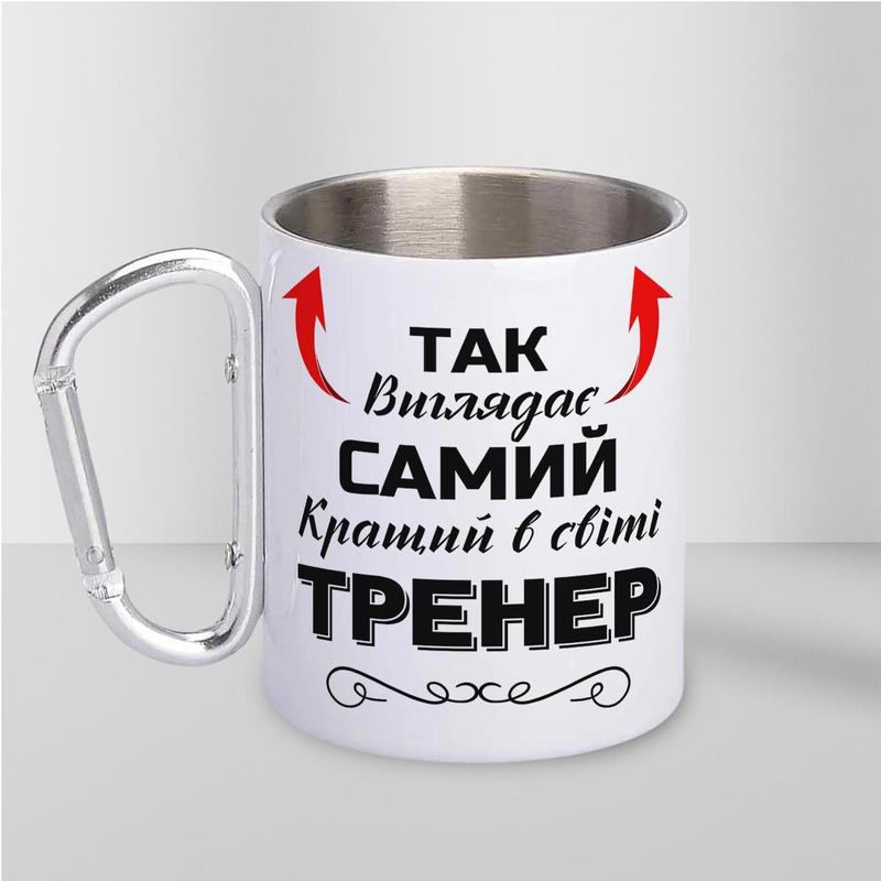 Кружка металева з карабіном "так виглядає самий кращий тренер" 300 мл біла