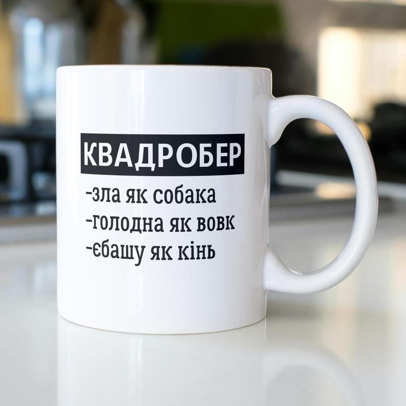 Кружка з принтом "квадробер жінка" 330 мл біла