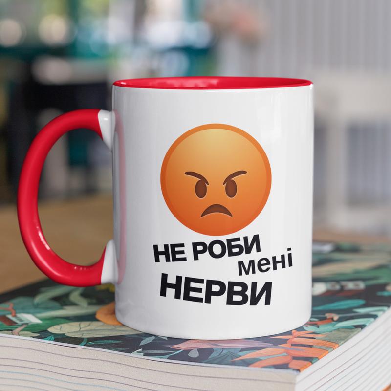 Чашка керамічна з принтом "не роби мені нерви" 330 мл, біла з червоною ручкою