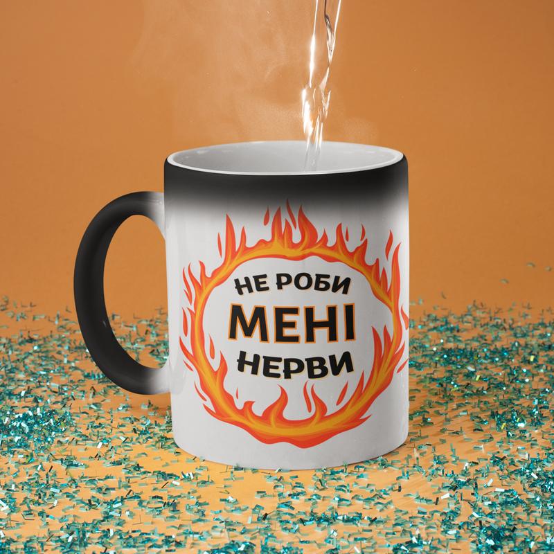 Чашка хамелеон керамічна з принтом "не роби мені нерви" 330 мл