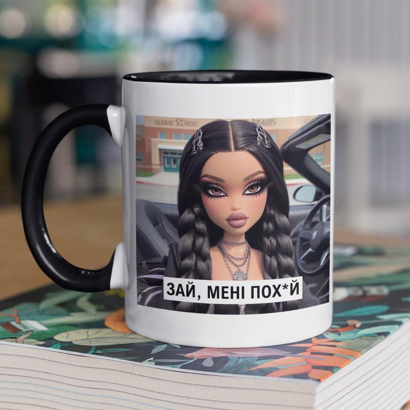 Чашка керамічна з принтом "зай мені пох*й" 330 мл, біла з чорною ручкою
