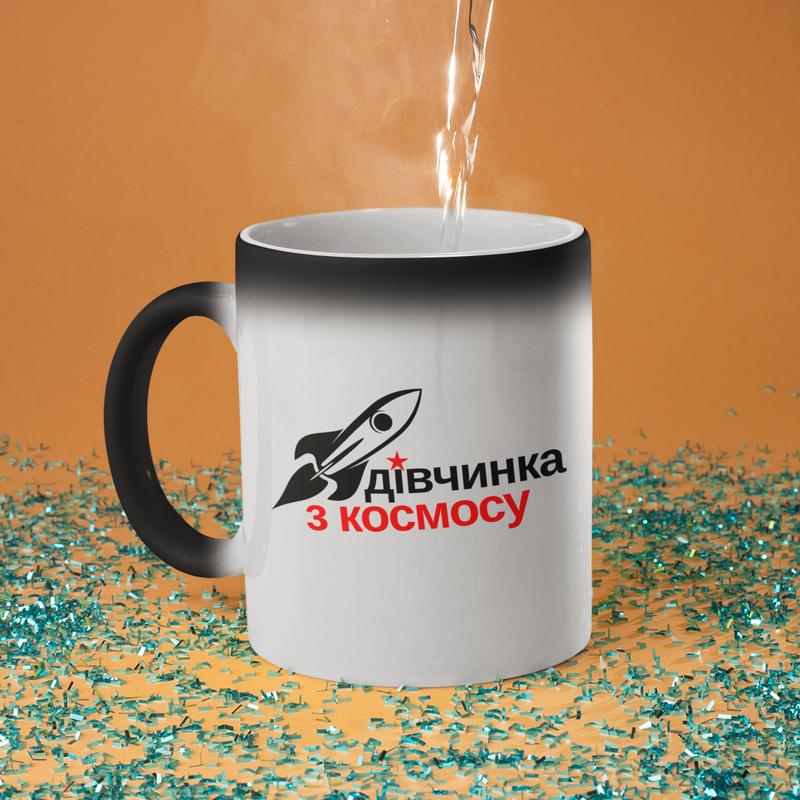 Чашка хамелеон керамічна з принтом "дівчинка з космосу" 330 мл
