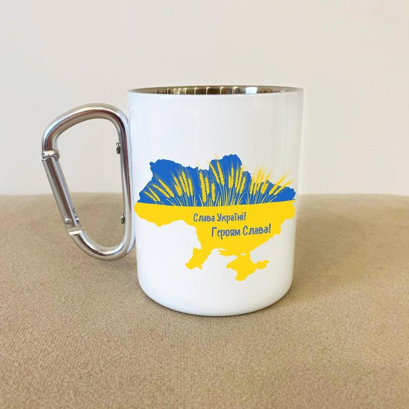 Кружка металева з карабіном "слава україні" 300 мл біла