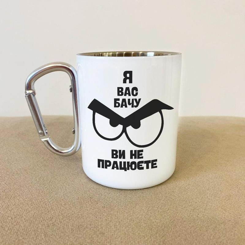 Кружка металева з карабіном "я вас бачу" 300 мл біла