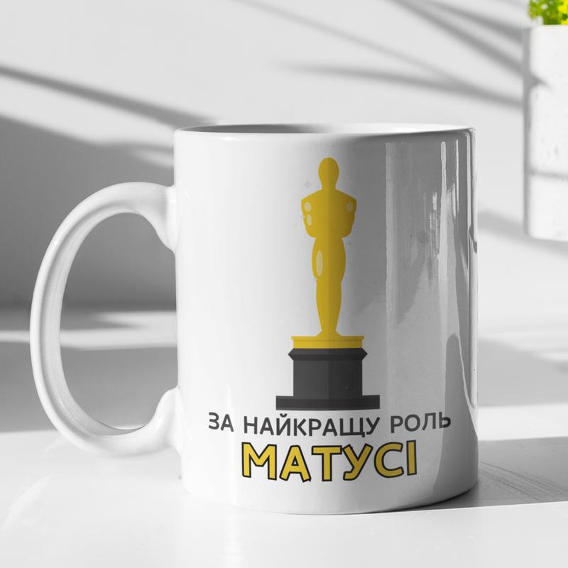 Чашка керамічна з принтом "за найкращу роль матусі" 330 мл, біла