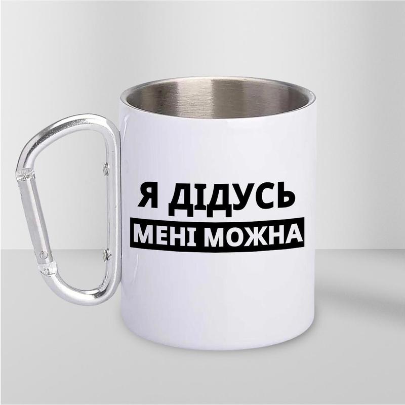 Чашка металева з принтом "я дідусь мені можна" 300 мл з карабіном, біла