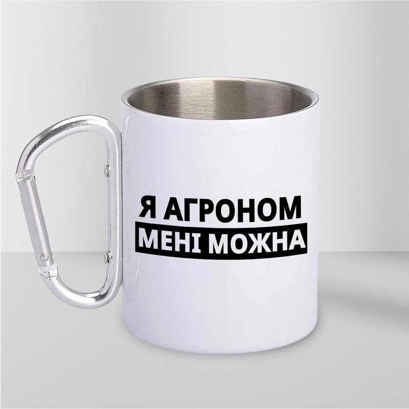Чашка металева з принтом "я агроном мені можна" 300 мл з карабіном, біла