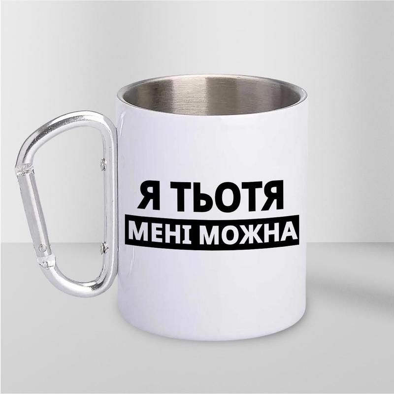 Чашка металева з принтом "я тьотя мені можна" 300 мл з карабіном, біла