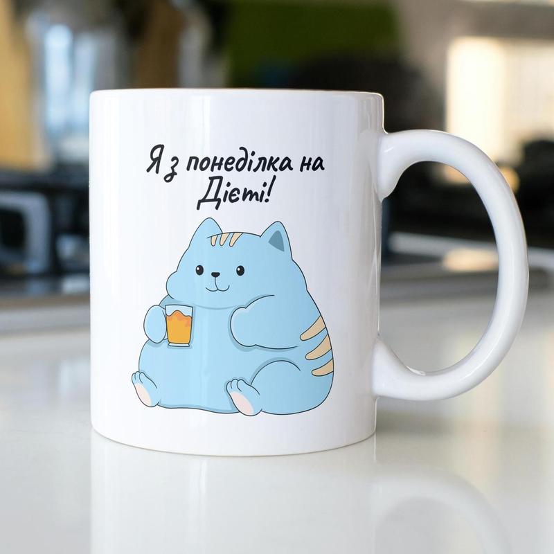Кружка з принтом "з понеділка на дієті" 330 мл біла