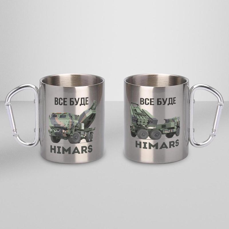 Кружка металева з карабіном "все буде himars" 300 мл срібляста