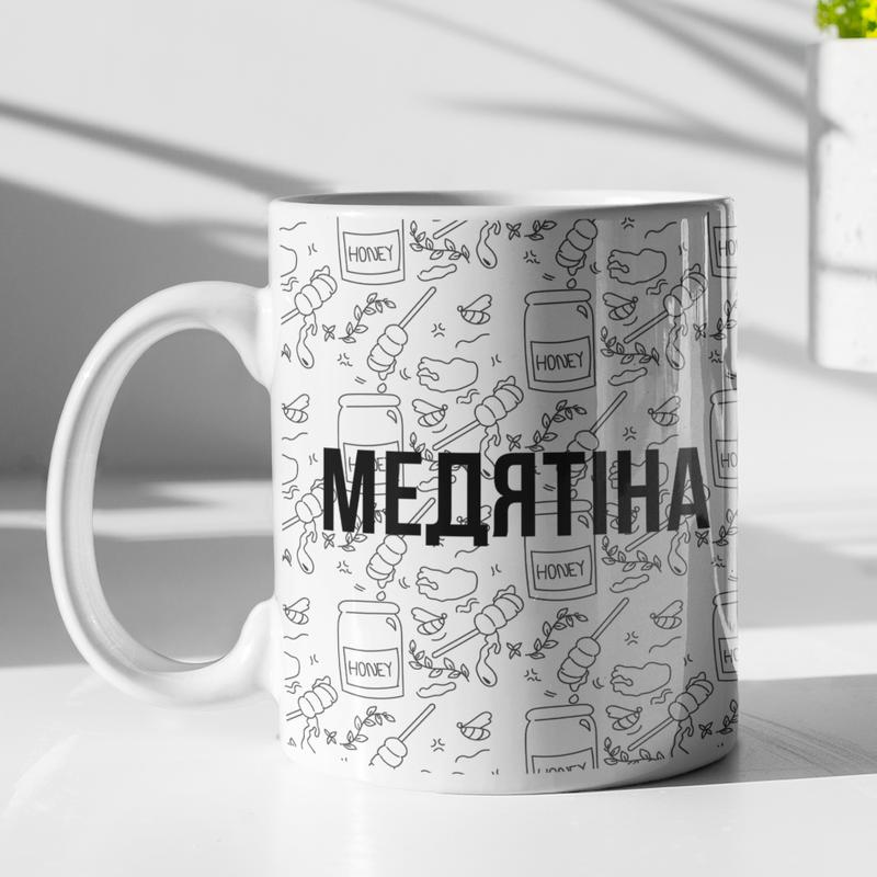 Чашка керамічна з принтом "медятіна" 330 мл, біла