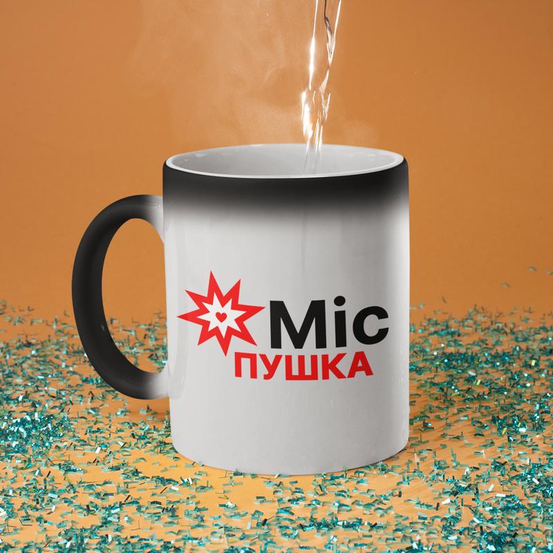 Чашка хамелеон керамічна з принтом "міс пушка" 330 мл