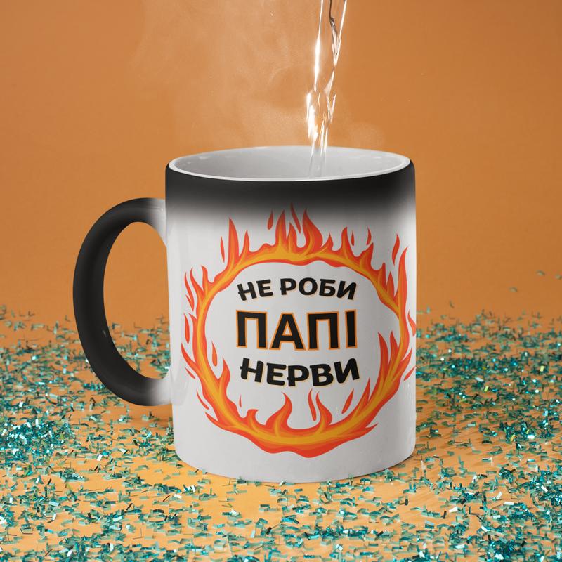 Чашка хамелеон керамічна з принтом "не роби папі нерви" 330 мл