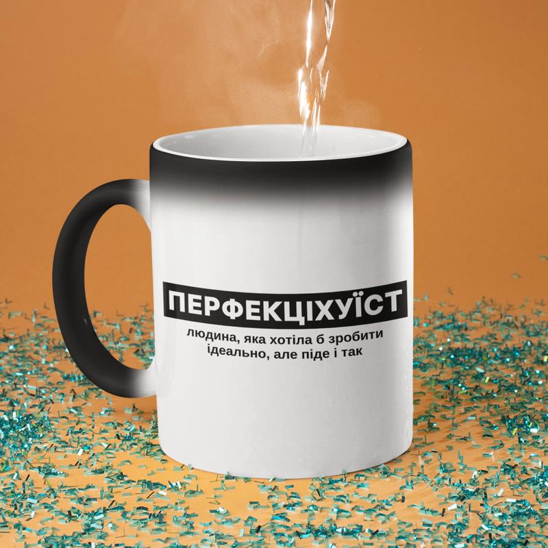 Чашка хамелеон керамічна з принтом "перфекціхуїст" 330 мл