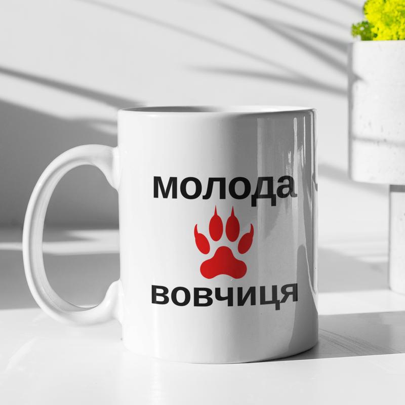 Чашка керамічна з принтом "молода вовчиця" 330 мл, біла