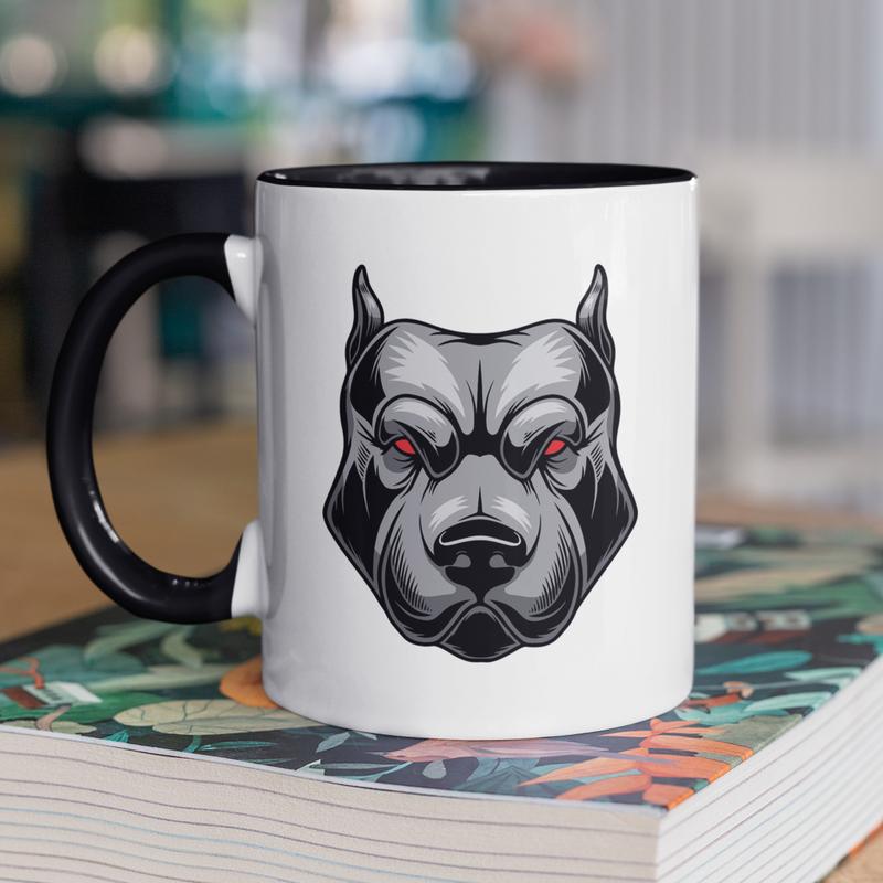 Чашка керамічна з принтом "пітбуль" 330 мл, біла з чорною ручкою