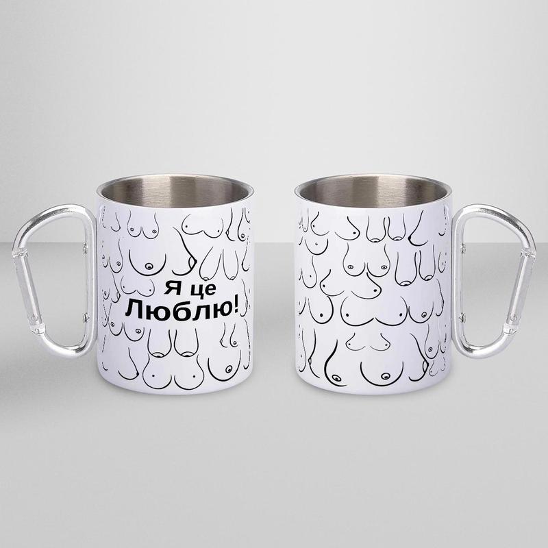 Чашка металева з принтом "я це люблю" 300 мл з карабіном, біла