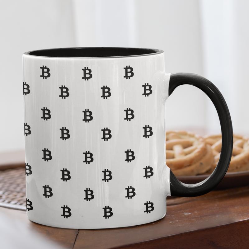 Чашка керамічна з принтом "bitcoin" 330 мл, біла з чорною ручкою