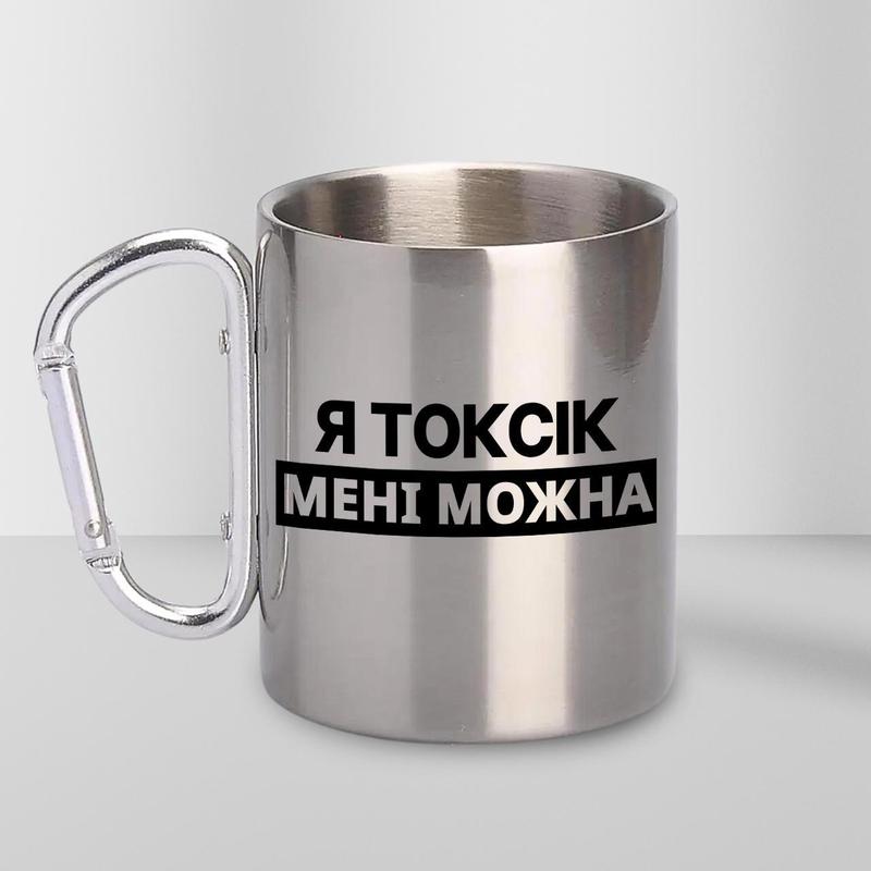 Чашка металева з принтом "я токсік мені можна" 300 мл з карабіном, срібляста