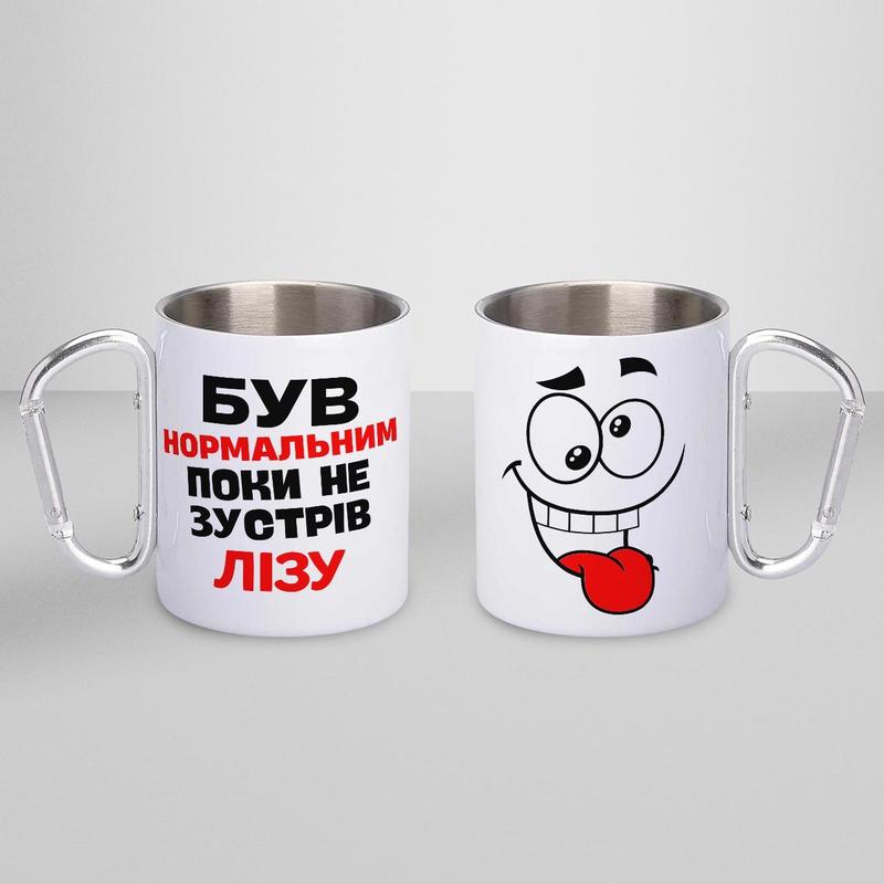 Кружка металева з карабіном "був нормальним поки не зустрів лізу" 300 мл біла |краща ціна|