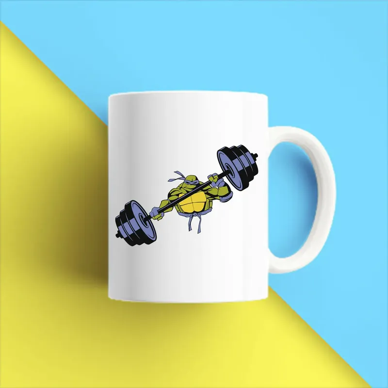 Белая кружка (чашка) с принтом "чапашки-ниндзя: леонардо с штангой" push it