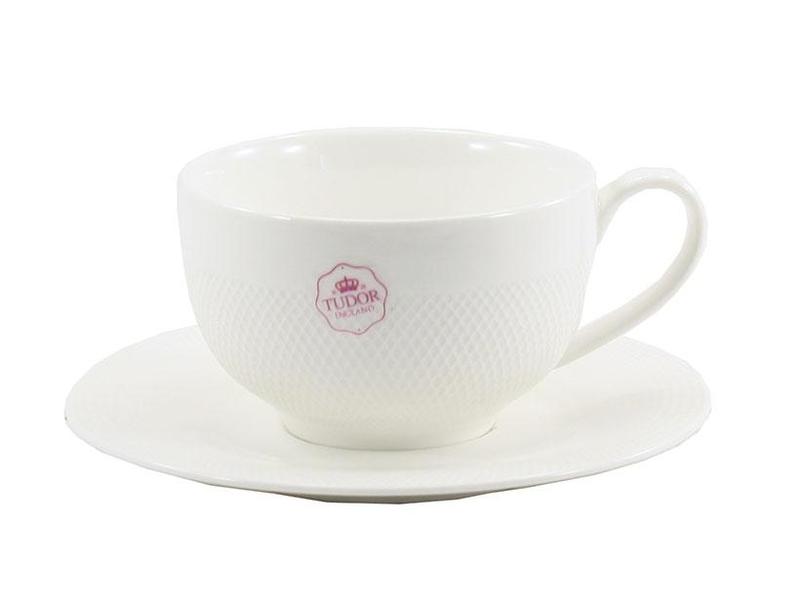 Чашка фарфоровая interos tudor чайная с бюдцем круглая 350 мл белая (tu2755)