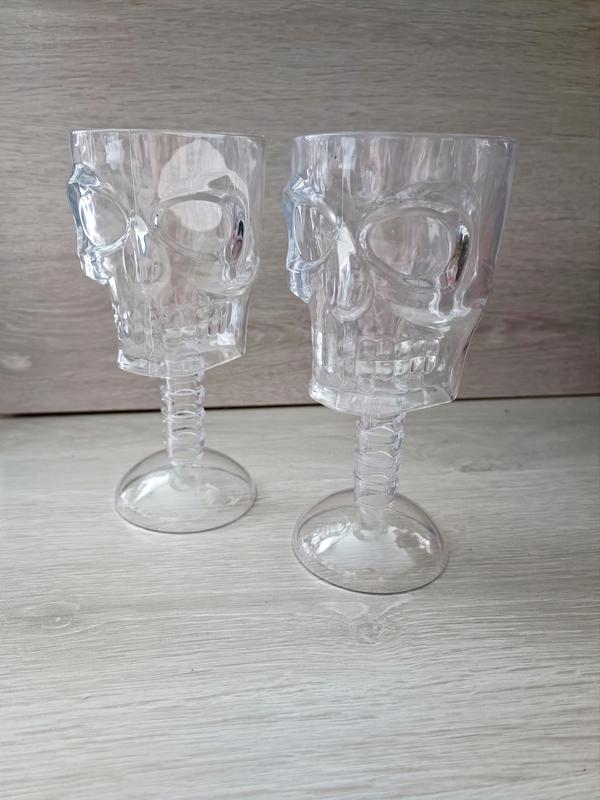 прозрачная пластиковая чаша или бокал в форме черепа. используется для напитков на тематических вечеринках, Хэллоуине или в качестве декоративного элемента. Изготовлен из легкого и прочного пластика, что делает его пригодным для многократного использования. Имеет рельефное изображение черепа, что придает ему уникальный вид. цена указана за шт