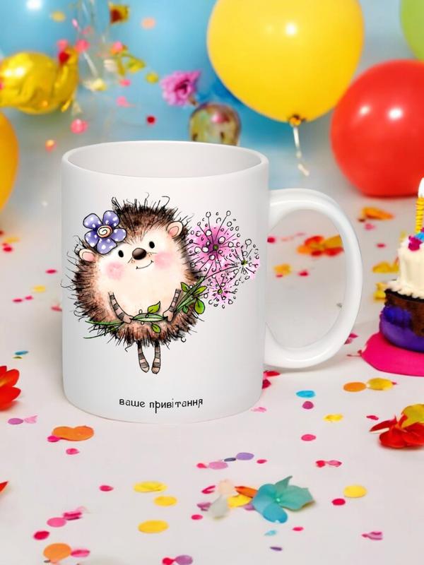 Чашка с принтом "ежик"