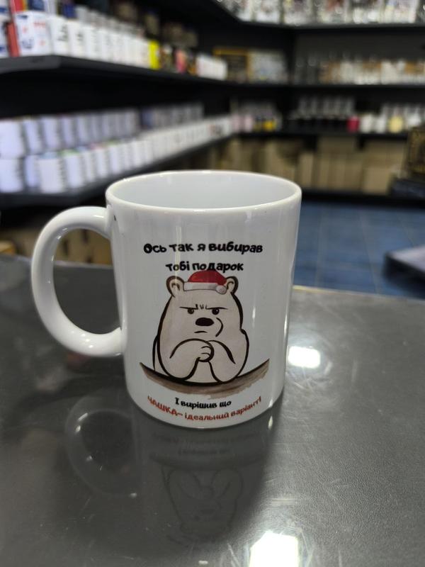 Эта чашка – не просто посуда, а настоящее признание в выборе подарка! С забавным изображением мишки, который "долго выбирал" и в конце концов решил, что "ЧАШКА — идеальный вариант!", она станет отличным презентом для друзей, коллег или близких.