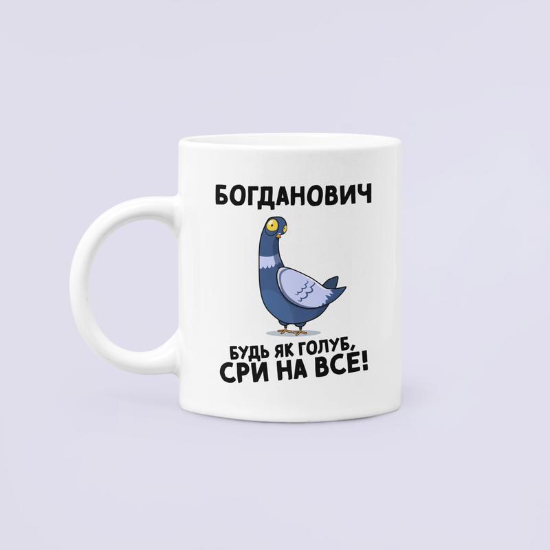 Чашка керамическая кружка с принтом богданович будь як голуб богданович белая 330 мл
