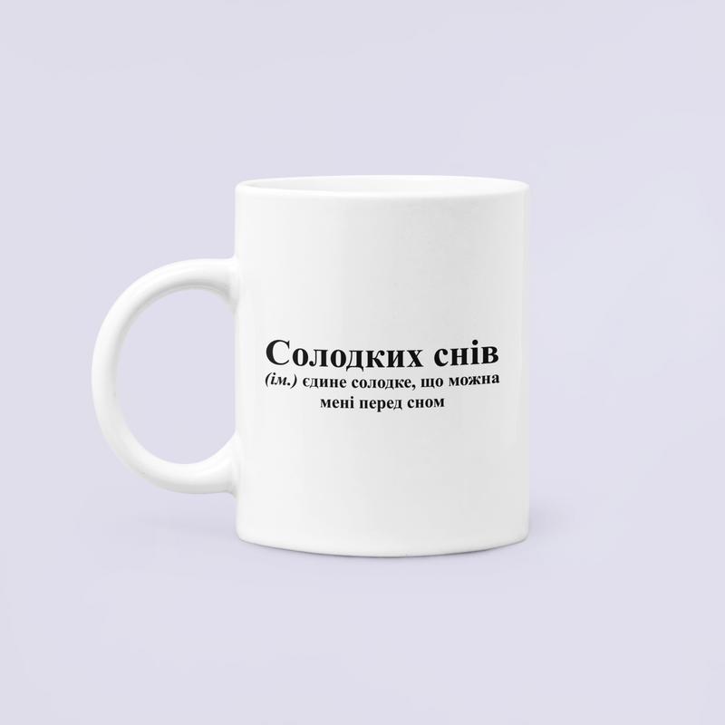 Чашка керамическая кружка с принтом солодких снів солодке що можна перед сном, белая 330 м...