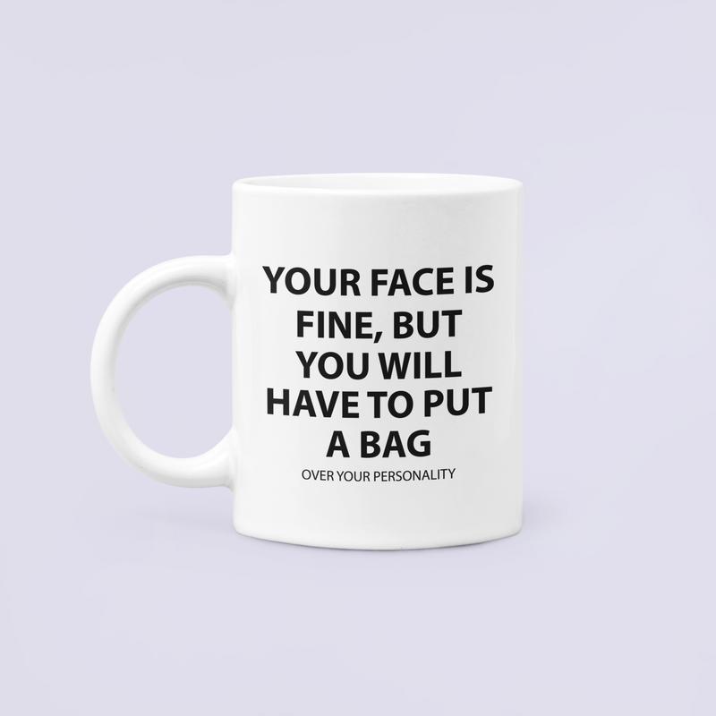 Чашка керамическая кружка с принтом your face is fine but белая 330 мл