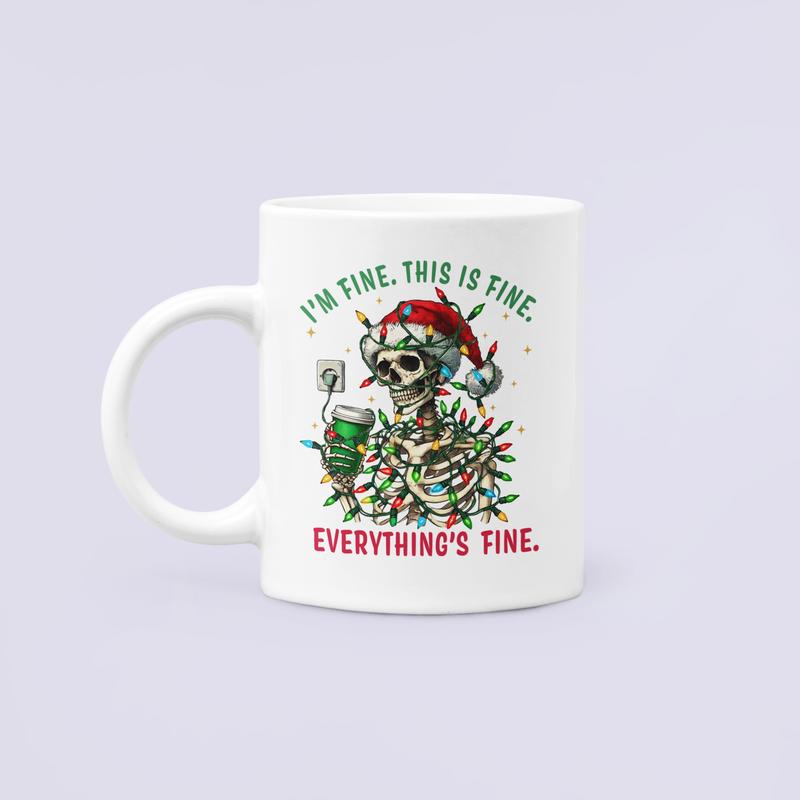 Чашка керамическая кружка с принтом санта скелет c гирляндой белая 330 мл
