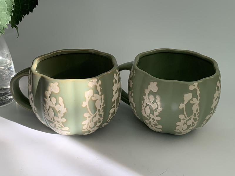 Чашка для кофе и чая с цветочным узором и тыквой, керамическая, зеленая, с гравированным цветочным узором, сезон тыквенного поля от Global Design Connections