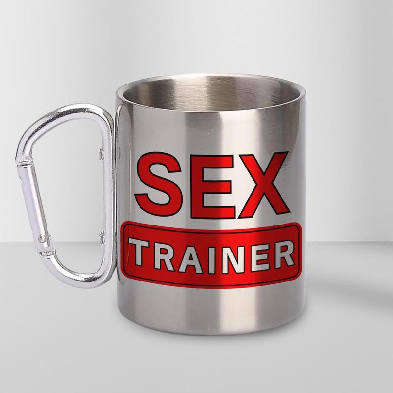 Чашка металева з принтом "sex trainer" 300 мл з карабіном, срібляста